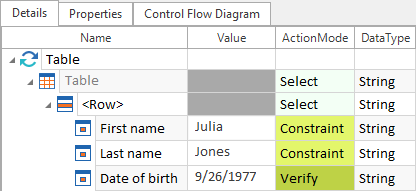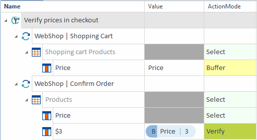 Mit der Aktion Verify können Sie Werte in einem Testobjekt überprüfen. Sie können auch Eigenschaften eines Controls überprüfen. Die Überprüfung erfolgt über die Spalte Wert eines XTestschrittwerts.