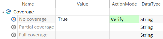 Sie können Aktionen wie folgt einsetzen. Wenn Sie keine Eigenschaft im Testschrittwert angeben, wird die Eigenschaft aus der Spalte Standardeigenschaft verwendet: