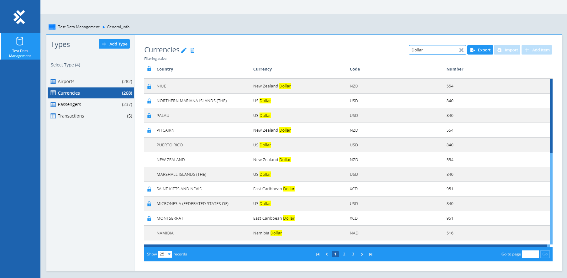 Mit dem Test Data Management können Sie Ihre Testdaten-Repositorys durchsuchen.