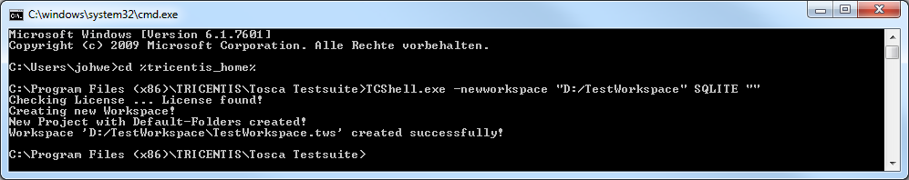 tcshell.exe -subset C:\Tosca_Projects\ToscaCommander\Standard.tsu -newworkspace C:\Tosca_Projects\Tosca_Workspaces\new_tcshell_workspace SQLITE