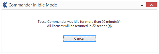 そうでない場合、Toscaはユーザーインターフェースをロックし、カウントダウン終了時にすべてのライセンスを返却します。またToscaはもう一つのメッセージを表示します:
