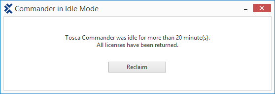 Toscaをアクティブに使用せずに、実行すると、ライセンスがブロックされます。他のユーザーのためにアイドル状態のライセンスを解放するには、一定時間後にアイドル状態のライセンスを返却するようにToscaを設定します。
