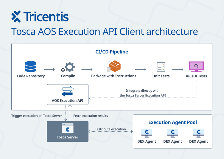 Tricentis Tosca bietet verschiedene Möglichkeiten, Tosca CI/CD zu integrieren. Dieses Kapitel erläutert, wie Sie direkt mit der Execution API von Tosca Server integrieren, was Ihnen maximale Flexibilität in Ihrer CI/CD-Pipeline bietet.