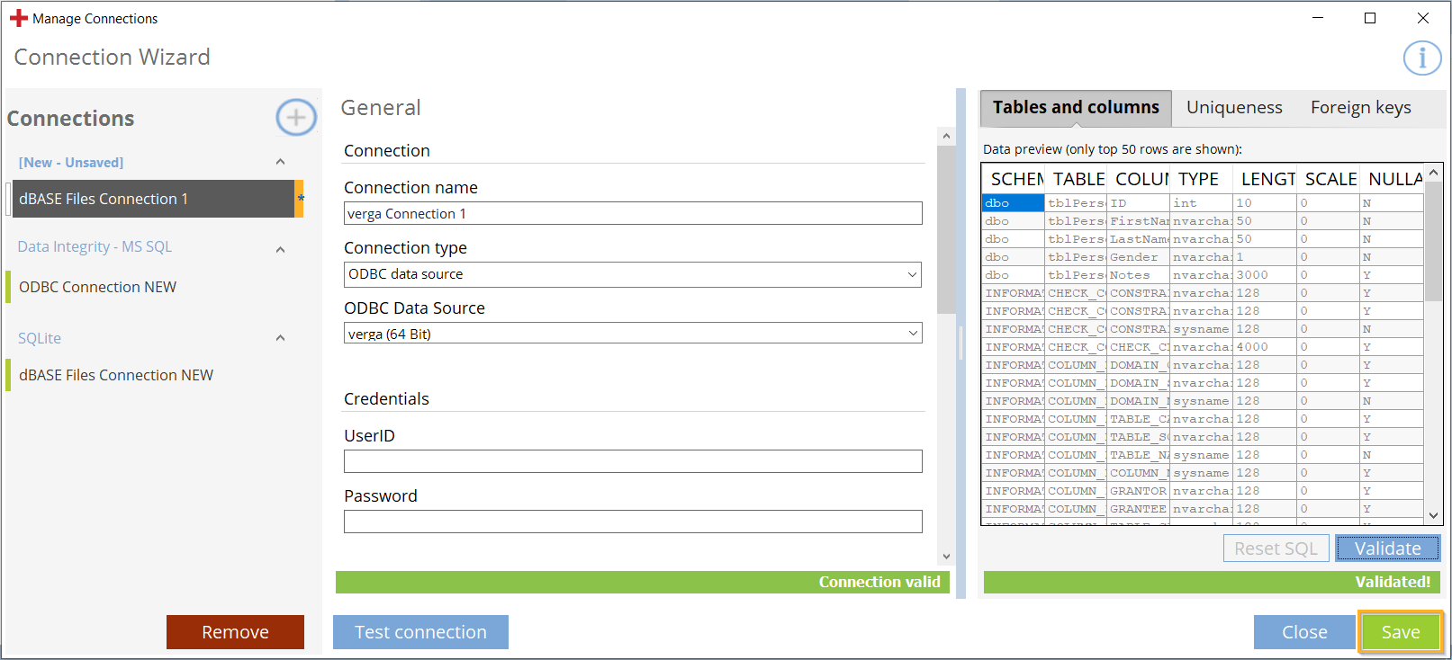 Um Ihre Verbindung zu speichern, klicken Sie auf Save.