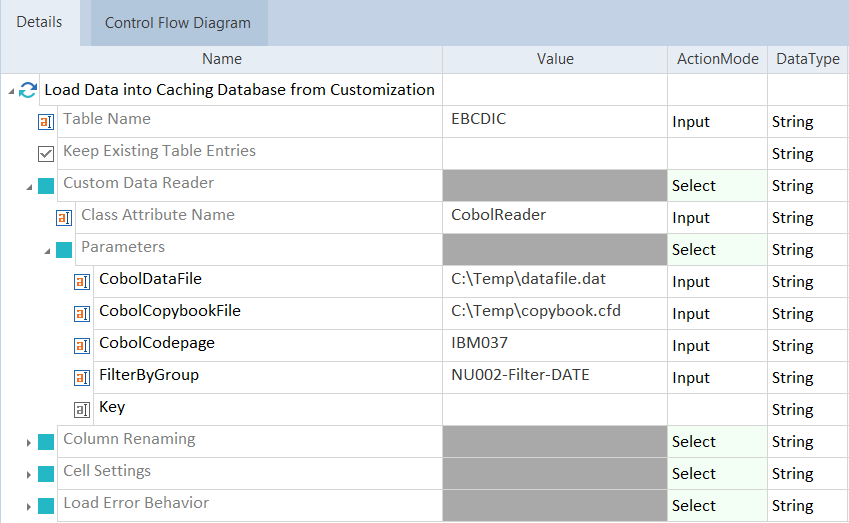 Sie öffnen in Tricentis Tosca den Testschritt Load Data into Caching Database from Customization.