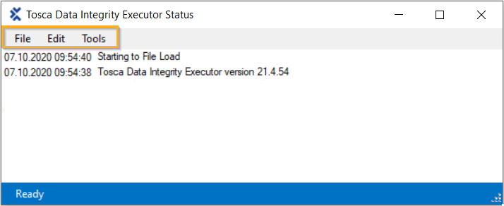Menüleiste Data Integrity Executor