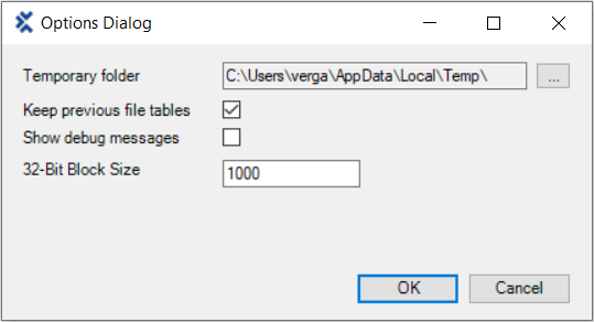 Options Dialog des Data Integrity Executor
