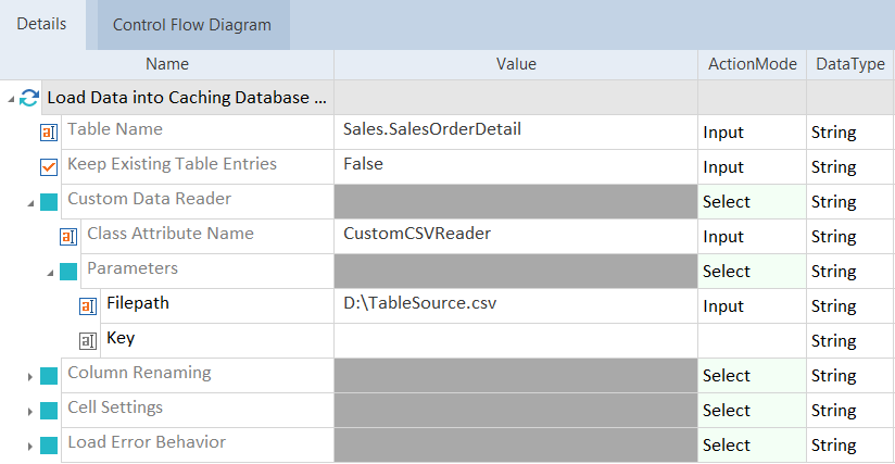 Sie öffnen in Tricentis Tosca den Testschritt Load Data into Caching Database from Customization.