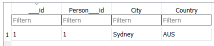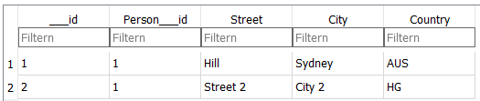 Die Spalte ___id wird als Primärschlüssel für jede Tabelle angelegt. Der Knoten Address hat drei Wertknoten Street, City und Country.