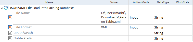 Verwenden Sie das Modul JSON/XML File Load into Caching Database, um eine JSON- oder XML-Datei in eine SQLite-Datenbank zu laden.