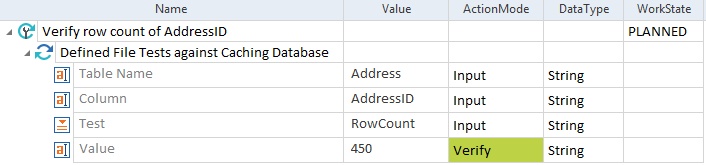 Mit dem Modul Defined File Tests against Caching Database können Sie vordefinierte Tests auf Tabellen durchführen, die mit dem Modul File Load into Caching Database erstellt wurden.