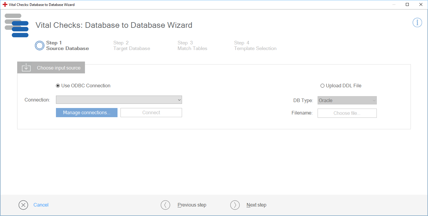 Um mit Step 2 - Target Database Definition fortzufahren, klicken Sie auf Next step.