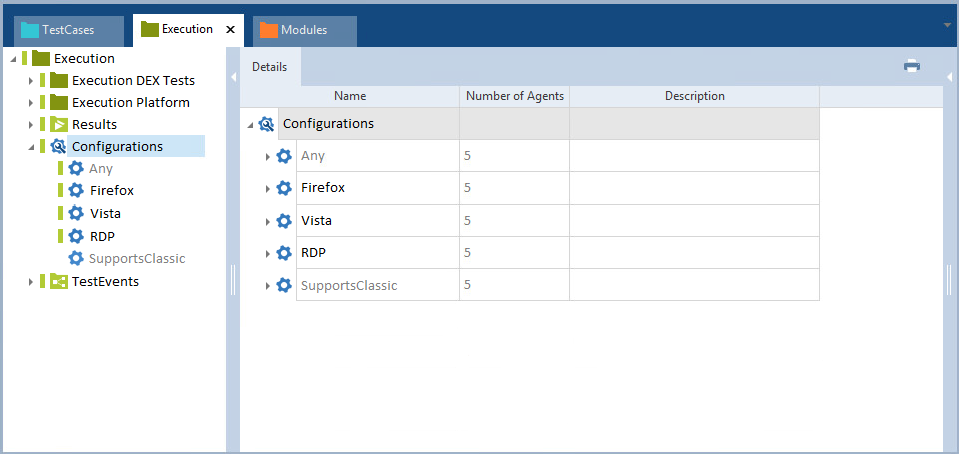 Konfigurationen. Konfigurationen geben an, welche Tosca Distribution Agents welche Ausführungslisten innerhalb des Testereignisses ausführen sollen.