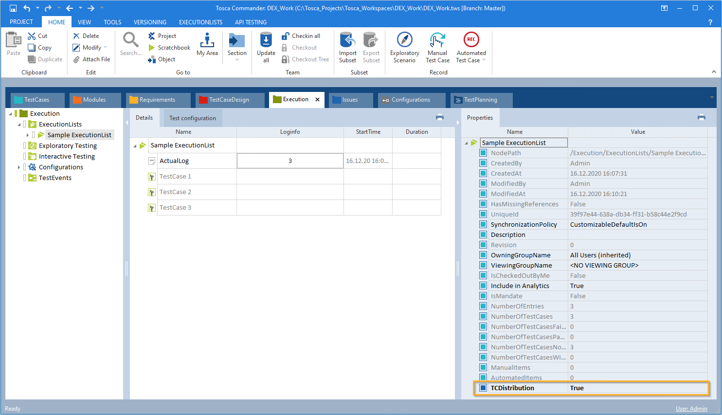 Geben Sie im Bereich Properties der Ausführungsliste für die Eigenschaft TCDistribution den Wert True ein.
