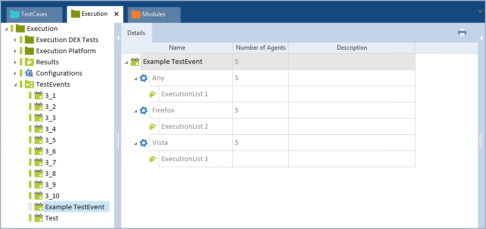 Ein Testereignis organisiert die Ausführung mit der Tosca Distributed Execution.