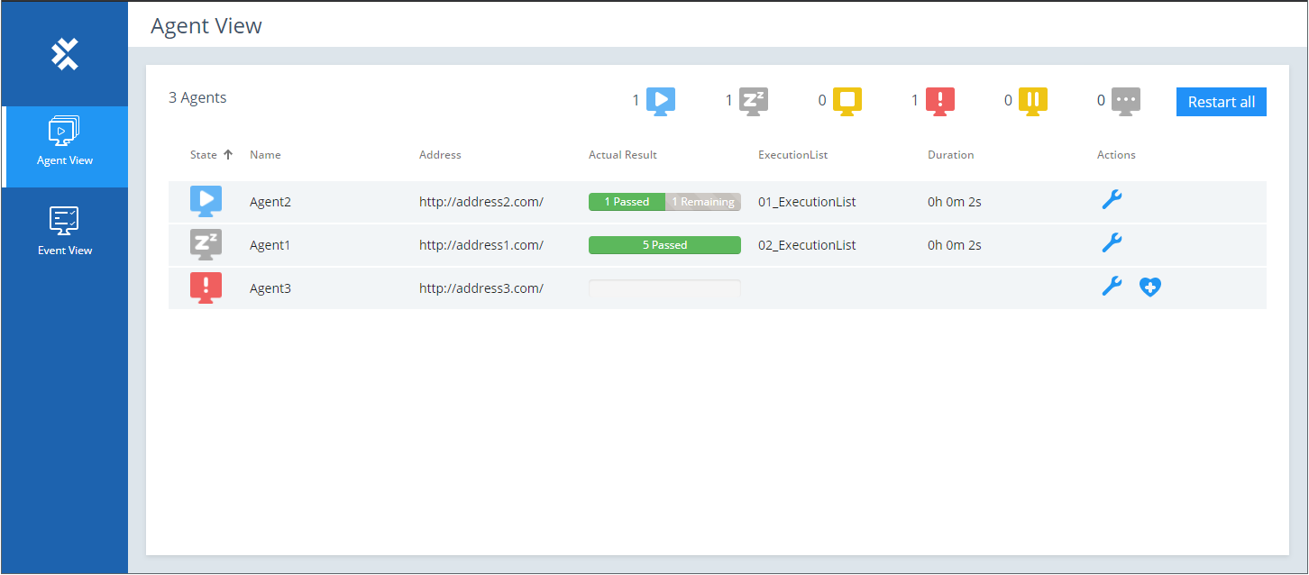In der Agent View im Tosca Distributed Execution (DEX) Monitor können Sie Ihre Agents verwalten