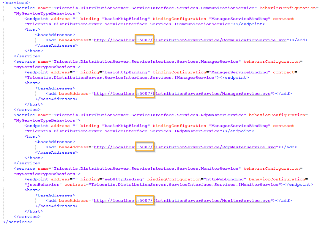 2. Ersetzen Sie die Portnummer in jeder der vier baseAddresses durch die gewünschte Portnummer.