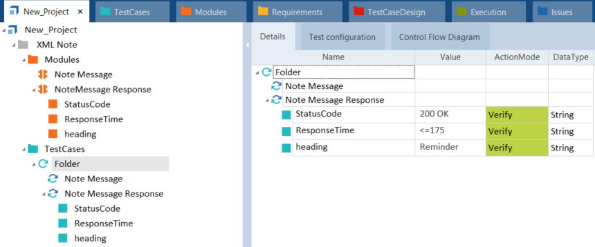 Das System fügt die Modulattribute zu den Modulen hinzu, zu denen sie gehören. Wenn Sie ein Element ausgewählt haben, das sowohl Module als auch Testfälle enthält, fügt das System auch die entsprechenden XTestschritte und XTestschrittwerte hinzu, springt zum Testfall und klappt die Testschritte auf.