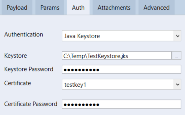 Wählen Sie im Aufklappmenü Authentication die Option Java Keystore.