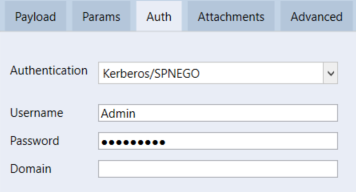 Sie können die Authentifizierung über Kerberos/SPNEGO oder NTLM in der API Engine für die Kommunikation mit Ihren Webservices konfigurieren. Dies erfordert einen Benutzernamen, ein Passwort und Domäneninformationen.