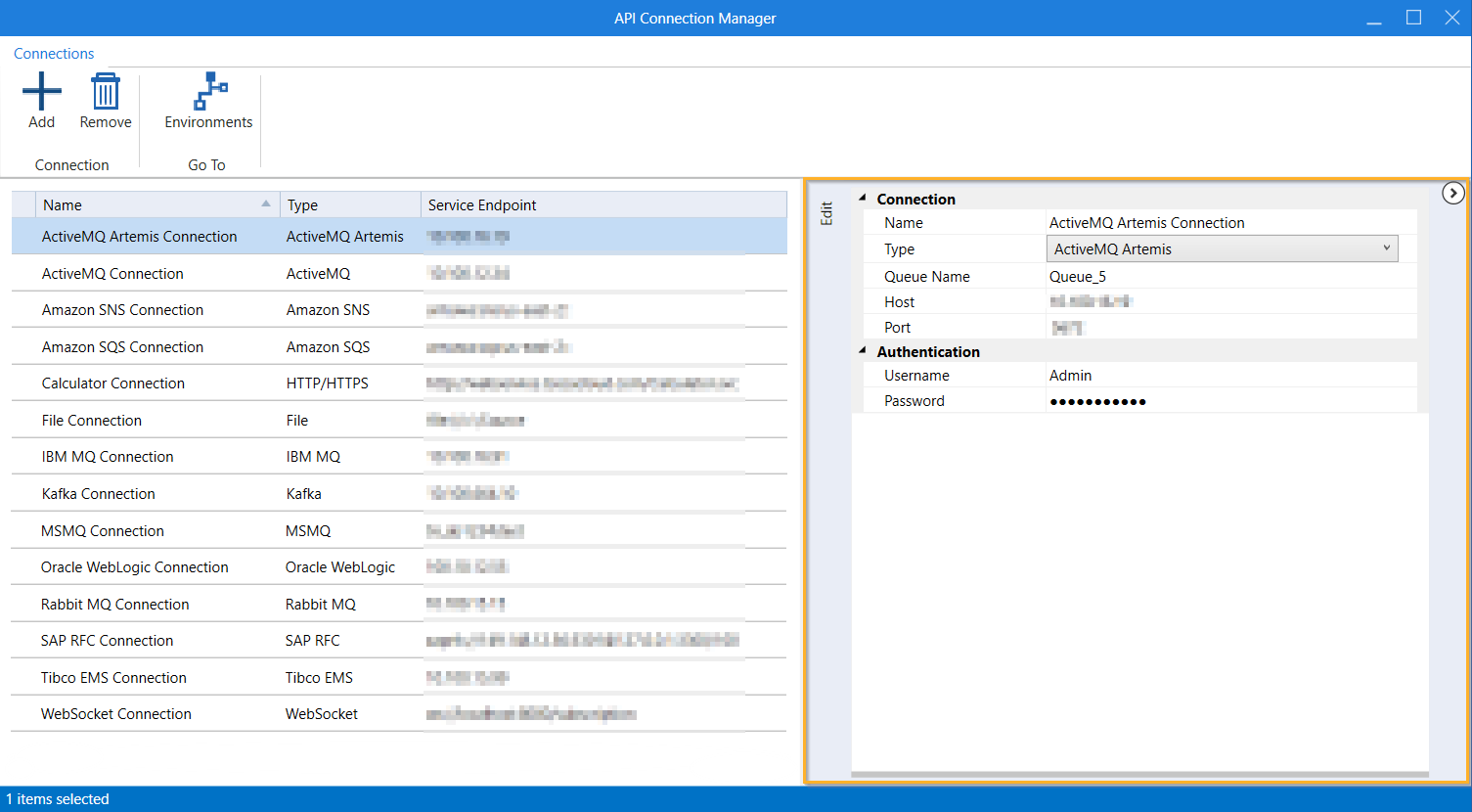 Sie können eine ActiveMQ Artemis-Verbindung im API Connection Manager konfigurieren.