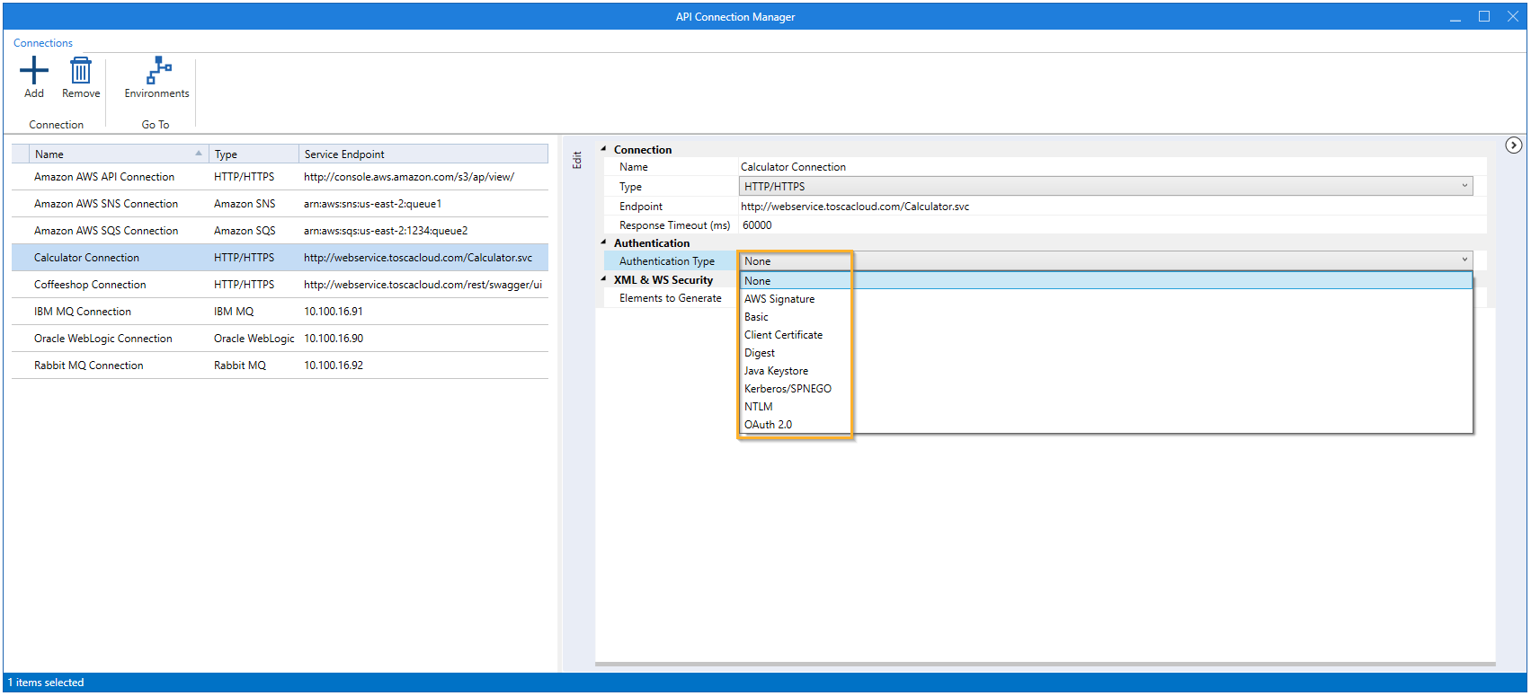 Sie können die Authentifizierung für Ihre API-Verbindung im Abschnitt Edit des API Connection Manager konfigurieren.