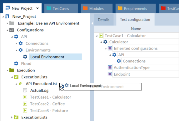 Wählen Sie zunächst das API-Environment im Ordner Configurations und ziehen Sie dieses per Drag & Drop auf die Ausführungsliste.
