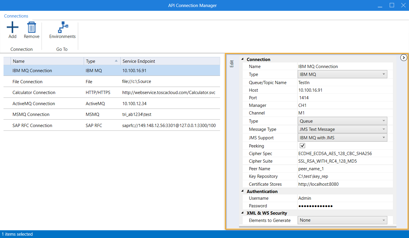 Sie können eine IBM MQ-Verbindung im API Connection Manager konfigurieren.