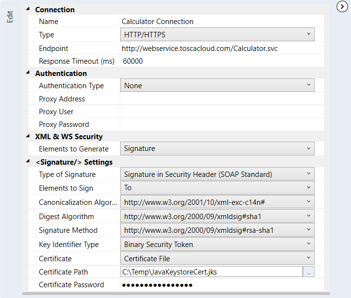 Klappen Sie den Abschnitt Edit auf und springen Sie zu XML & WS Security.