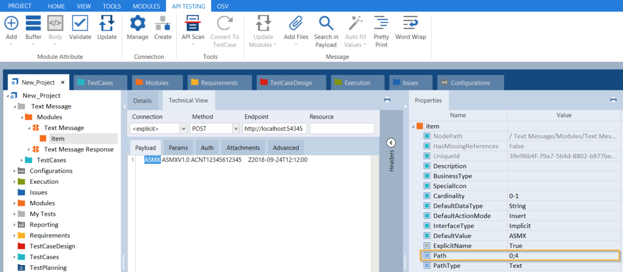 Um ein Modulattribut hinzuzufügen, klicken Sie im Menü API Testing auf Add.