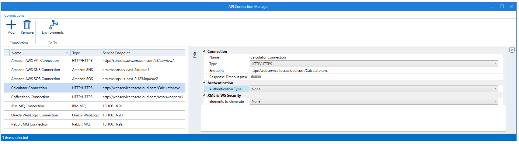 Sie können Ihre API-Verbindungsdetails bearbeiten und die Authentifizierung im Abschnitt Edit des API Connection Manager konfigurieren. Der Abschnitt Edit ist standardmäßig eingeklappt.