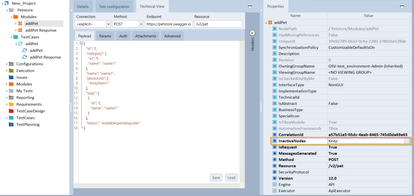 Wie Sie die Eigenschaft InactiveNodes für API-Module setzen, die mit älteren Tricentis Tosca-Versionen als 10.3 erstellt wurden, erfahren Sie in der Tricentis Knowledge Base: Eigenschaft Inactive nodes für XModule.