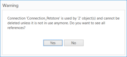 Um zu sehen, welche Objekte momentan die Verbindung verwenden, klicken Sie auf Yes im Dialogfenster Warning.
