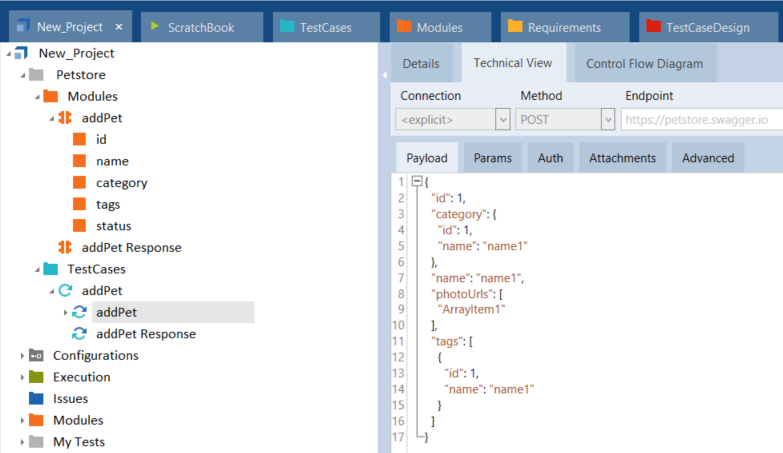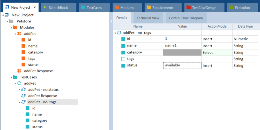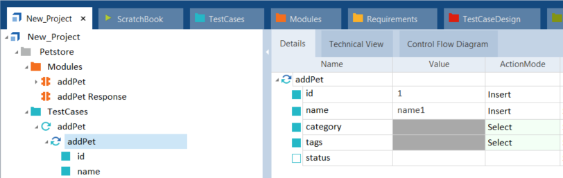 Klicken Sie im Menü API Testing auf Auto fill Values, um den anfänglichen XTestschrittwert in einen generierten XTestschrittwert umzuwandeln.