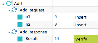 In diesem Beispiel soll der Dienst die Summe zweier Werte berechnen und überprüfen, ob die Berechnung korrekt ist. Fügen Sie dazu dem Testschritt Add Request die folgenden Modulattribute hinzu: