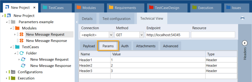 Es ist nicht möglich, dynamische Ausdrücke in der Technischen Ansicht zu verwenden. Wenn Sie einen Ausdruck wie {CP[Endpunkt]} verwenden möchten, fügen Sie ihn im Testfallbereich hinzu wie hier beschrieben: Kapitel " Testkonfigurationsparameter in einem Testfall verwenden". |