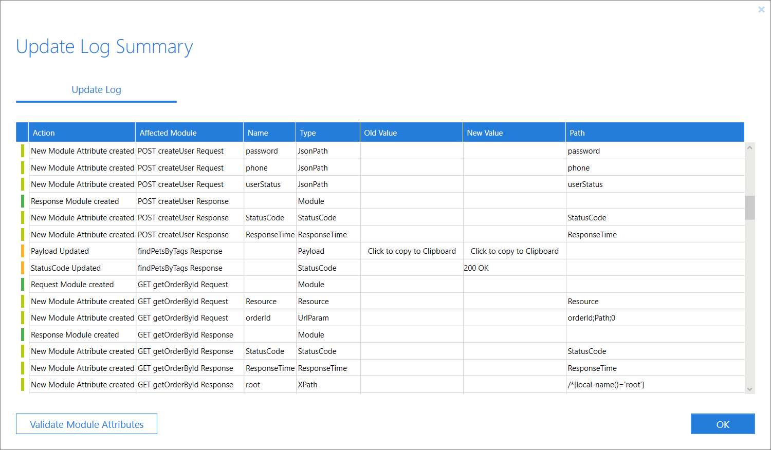 Das System zeigt im Dialog Update Log Summary eine Zusammenfassung aller Änderungen an, die es während der Aktualisierung des Moduls durchgeführt hat.