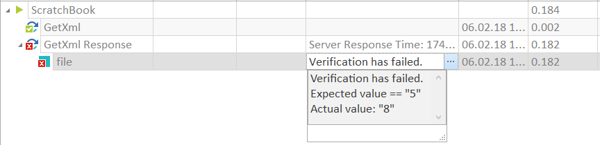 Die Ergebniszählung wird im Wertfeld des jeweiligen XTestschrittwerts hinzugefügt (siehe Beispiel unten).