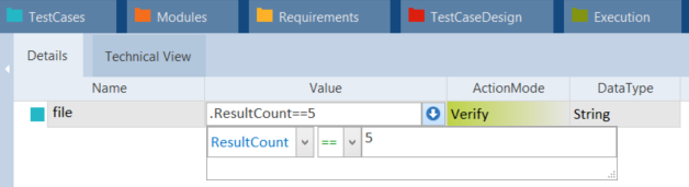 Geben Sie im Aufklappmenü Value ResultCount == <result> ein