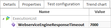 Um die Einstellung für das Response-Timeout lokal zu ändern, wird der Testkonfigurationsparameter WebserviceEngineResponseTimeout erstellt. Um das Timeout allgemein zu ändern, wird die Einstellung ResponseTimeout verwendet. Diese Einstellung gibt an, wie lange auf die Response eines Webservice gewartet wird. Die Angaben des Timeouts erfolgt in Millisekunden.