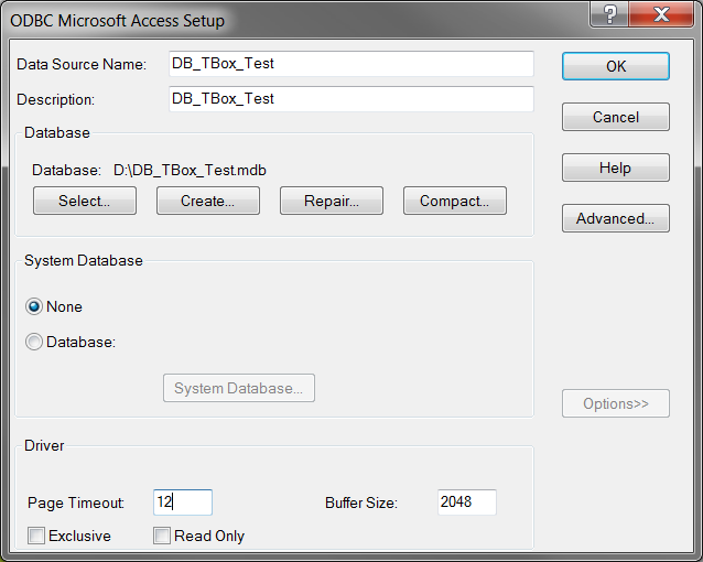 Beispiel: DB_TBox_Test im Reiter System-DSN