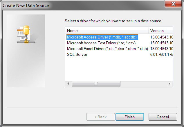 Wenn Sie beispielsweise eine Microsoft Access-Datenbank verwenden, wählen Sie den Treiber Microsoft Access Driver (*.mdb, *.accdb).