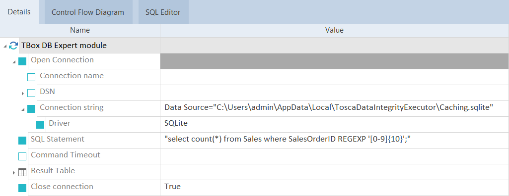 Als Erweiterung können Sie Ihre eigene externe DLL-Datei oder die SQLite.Interop.dll-Bibliothek verwenden, die mit Tricentis Tosca installiert wird.