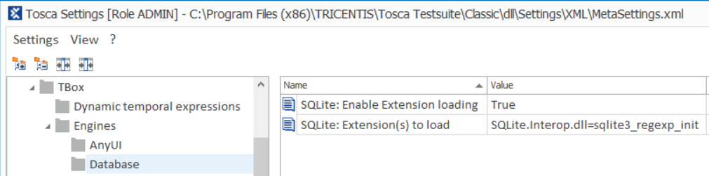 Tosca Settings: Eine SQLite-Erweiterung aktivieren und spezifizieren