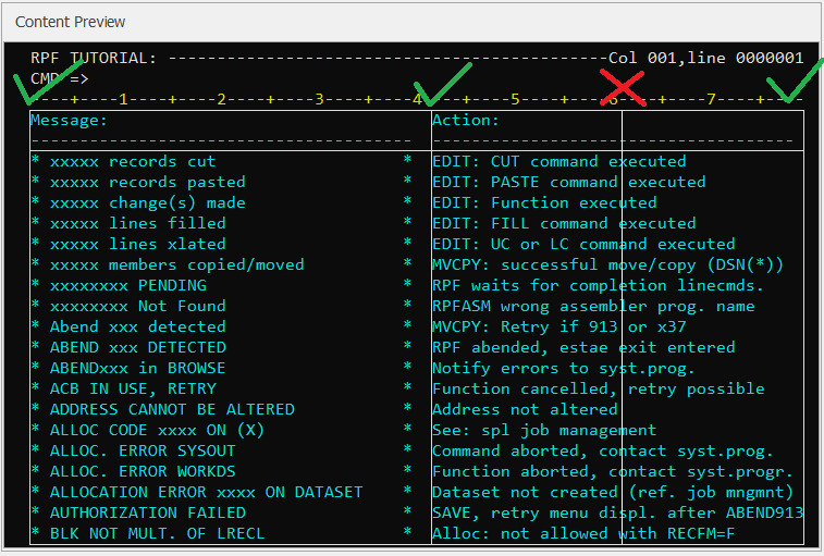 Wenn Sie eine Tabelle aufzeichnen und Ihren Tabellenbereich markieren, stellen Sie sicher, dass Sie Ihre Spaltenränder korrekt definieren. Diese Spalten definieren die Eingabefelder für Ihre Module, sodass Text, der zur Spalte gehört, in den definierten Spaltenbereich passen muss. Wenn der angegebene Bereich nicht die Startposition des Eingabefelds enthält, funktioniert die Eingabe in die entsprechende Zelle in Ihrem Testfall nicht.