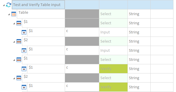 Wenn Sie mehrere Aktionen in derselben Tabelle ausführen möchten, verwenden Sie nicht mehrere Testschritte. Führen Sie sie stattdessen innerhalb des gleichen Testschritts aus. Um beispielsweise Text in mehr als ein Feld derselben Tabelle einzugeben, erstellen Sie individuelle Testschrittwerte für jede der Eingabeaktionen innerhalb desselben Testschritts.
