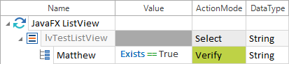 ListView-Eintrag auswählen In diesem Beispiel wird verifiziert ob der Eintrag Matthew in der ListView IvTestListView vorhanden ist: