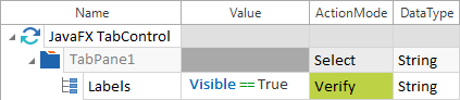 TabControl - Reiter auswählen Im folgenden Beispiel überprüft die Engine, ob der Reiter Labels in der Testapplikation sichtbar ist (Visible = True):