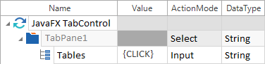 In diesem Beispiel wird der Reiter Tables im TabControl TabPane1 ausgewählt: