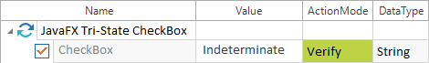 In diesem Beispiel wird verifiziert, ob die Tri-state-CheckBox mit dem Namen CheckBox den Status Indeterminate besitzt.